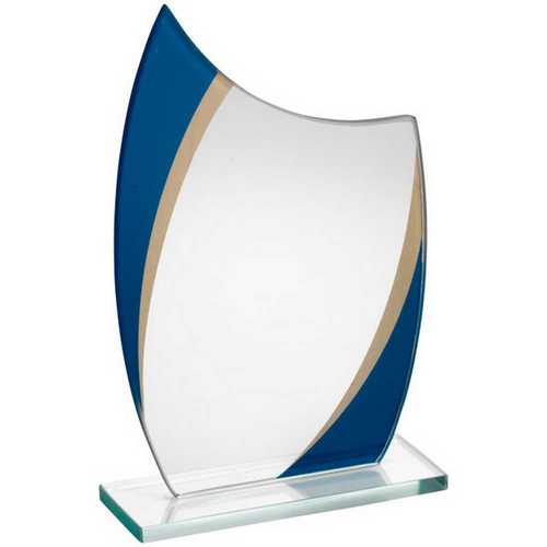 Jade Glass Curved Plaque With Blue|gold Highlights (4mm Thick) - 7.5in