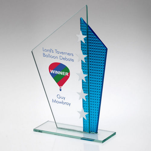 Jade Glass Plaque With Blue Shard & Silver Stars (4mm Thick) - 7.25in