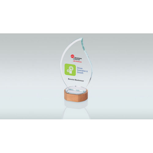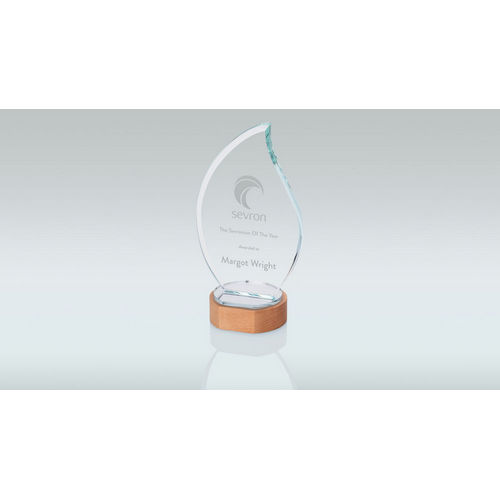 Clear Glass Flame On Light Wood Base (10mm Thick) - 9in
