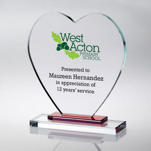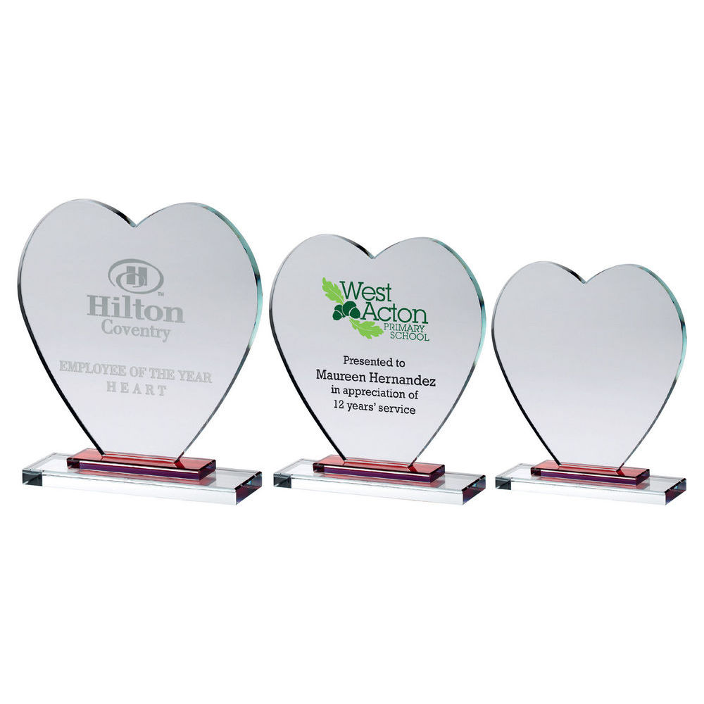 Clear Glass Heart With Red Stepped Base (10mm Thick) - 9in