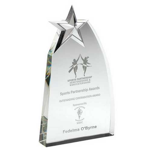 Clear Glass Wedge With Detailed Metal Star - 8.5in
