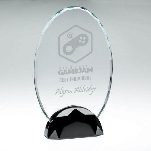 Clear Glass Oval Plaque (10mm Thick) In Gun Metal Base - 9.5in