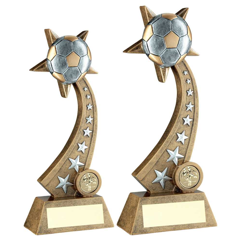 Brz|pew|gold Football On Star Trail With Plate (1in Centre) - 10in