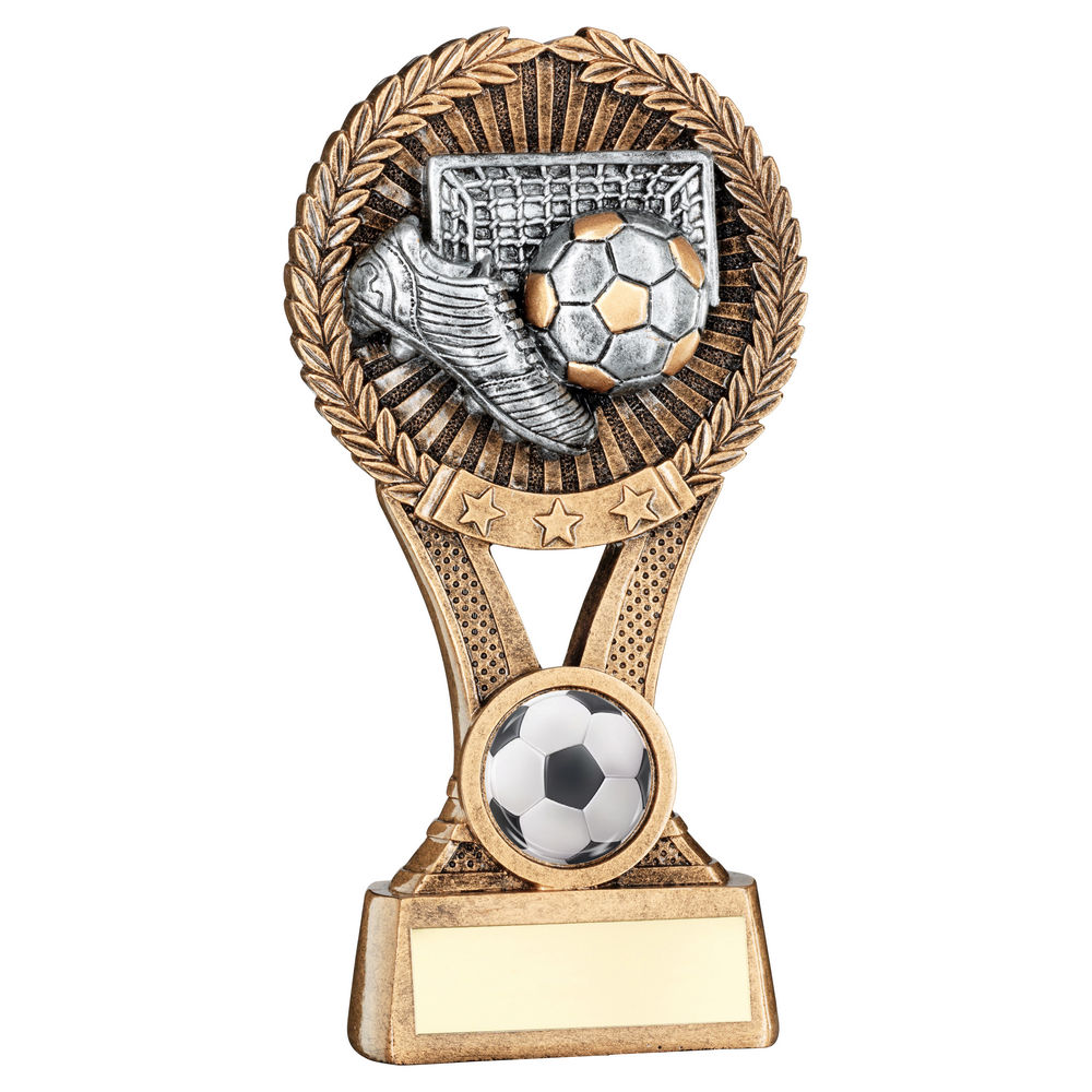 Brz|gold|pew Football Round Wreath On V Riser With Plate (1in Cen) - 6in