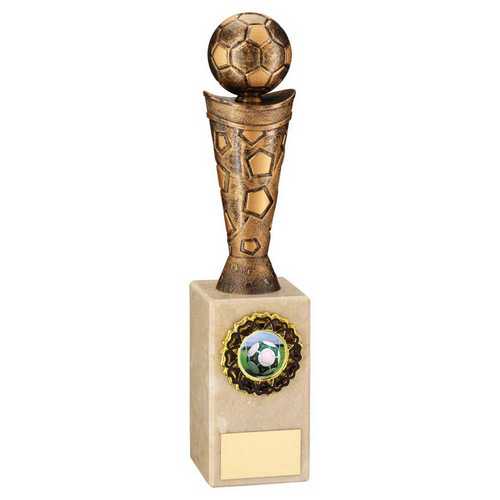 Bronze|gold Plastic Football Figure On Cream Marble Trophy - (1in Cen) 10in