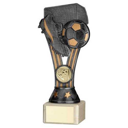 Pewter|gold Plastic Wembley Figure On Cream Marble Trophy (1in Cen) - 7.25in