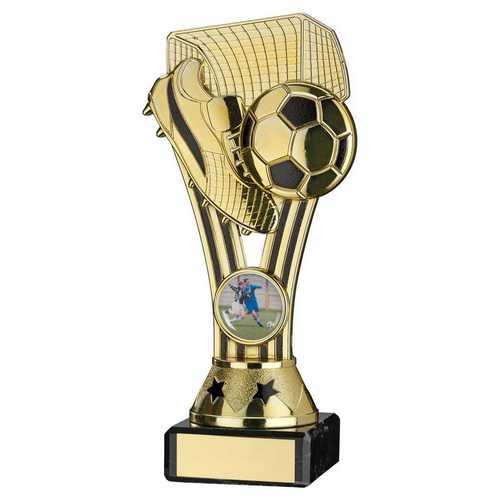Gold|black Plastic Wembley Figure On Black Marble Trophy (1in Cen) - 8in