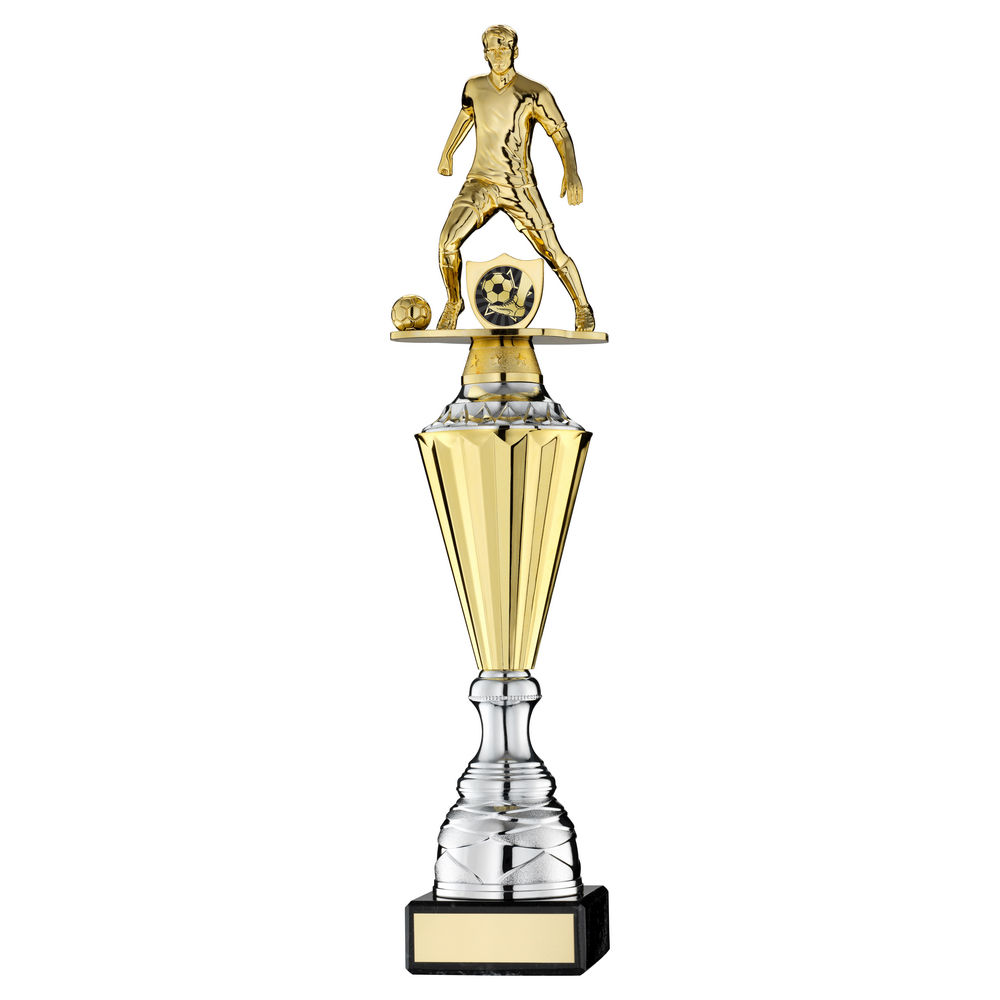 Gold Plastic Male Football Figure On Gold|silver Trophy (1in Cen) - 17.75in