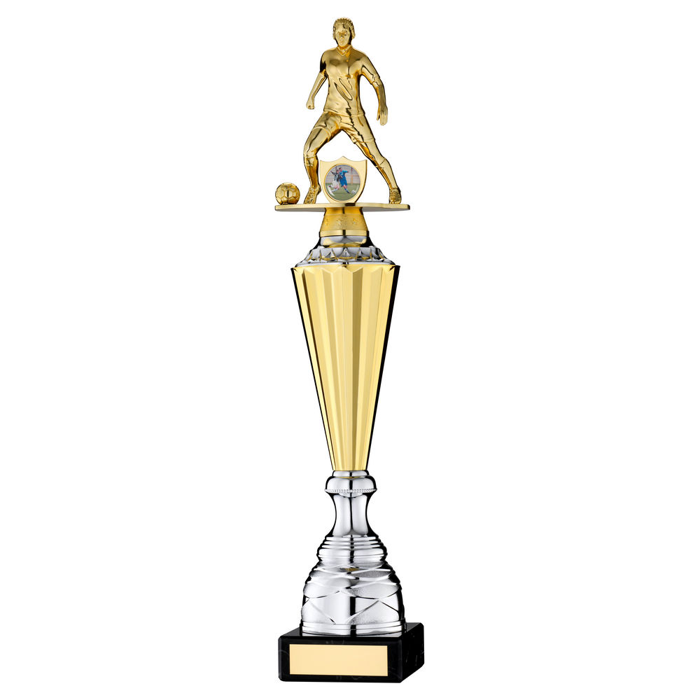 Gold Plastic Female Football Figure On Gold|silver Trophy (1in Cen) - 15.75in