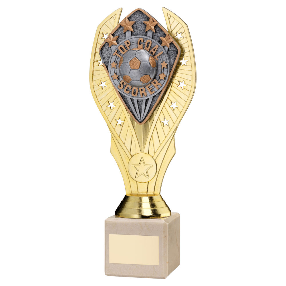 Gold Holder + Top Goal Scorer Disc & Cream Marble Trophy (1in Cen) - 11in