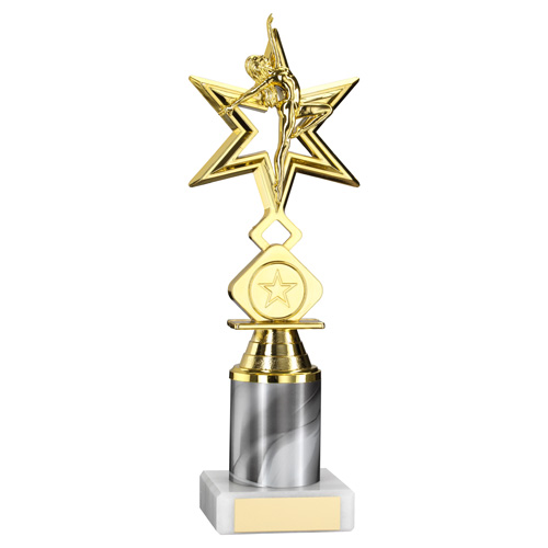 Gold|white Dance|gym Star Figure Assembled On Marble - (1" Cen|2" Tube) 9in