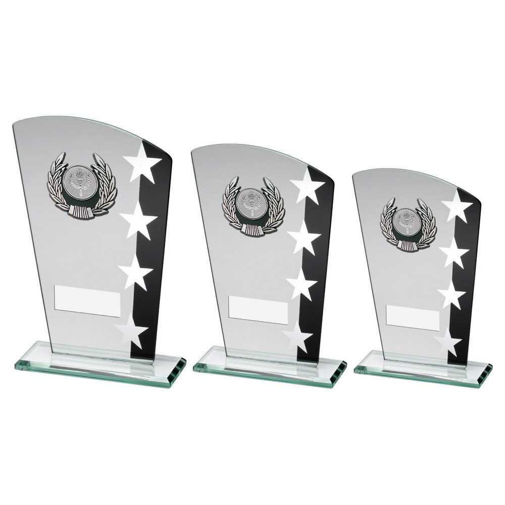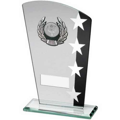 Jade|blk|silv Glass Plaque With Silv|blk Trim Trophy (1in Centre) - 6.5in