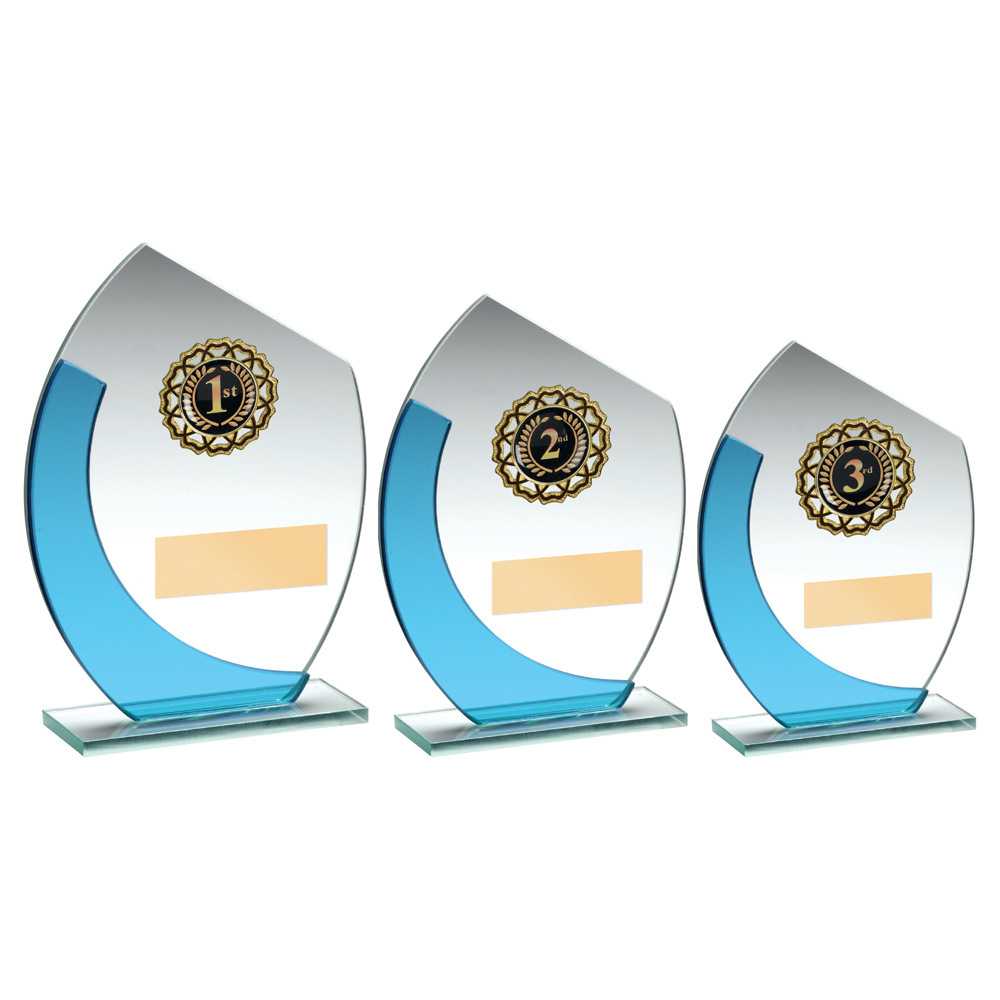 Jade|blue Glass With Gold Trim Trophy (1in Centre) - 5.5in