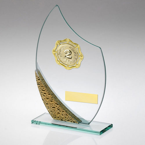 Jade|silv|gold Glass Plaque With Gold Trim Trophy - (2in Centre) - 8in