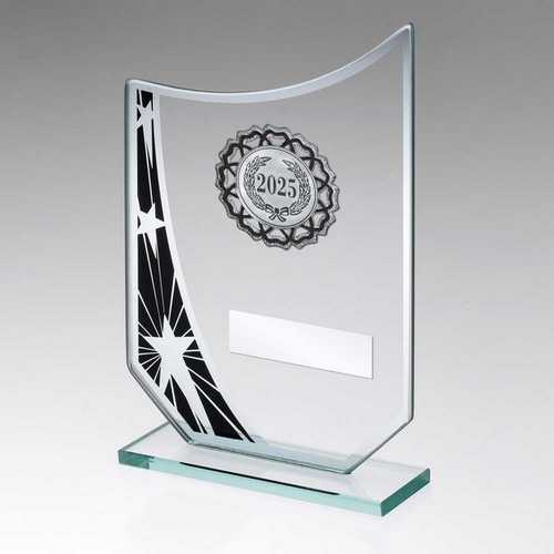 Jade|blk|silv Glass Star Plaque With Silv|blk Trim Trophy - (1in Cen) - 6.5in