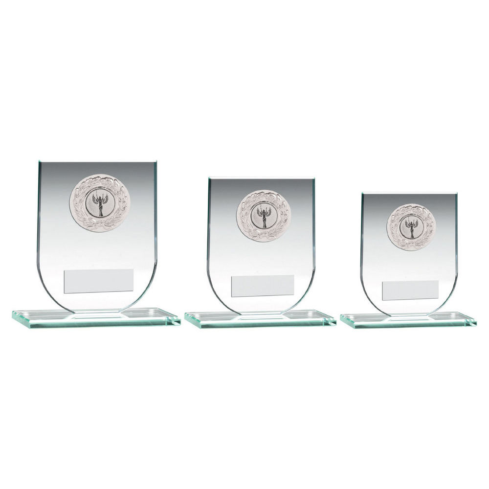 Picture of Jade Glass Shield Plaque With Silver Round Metal Trim Trophy (1in Cen) - 3.75in Picture of Jade Glass Shield Plaque With Silver Round Metal Trim Trophy (1in Cen) - 3.75in Picture of Jade Glass Shield Plaque With Silver Round Metal Trim Trophy (1in Cen) - 3.75in