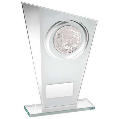 White|silver Printed Glass Plaque With Golf Insert With Plate - 8in