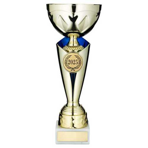 Gold|blue Trophy Cup With Plate (2in Centre) - 13.5in