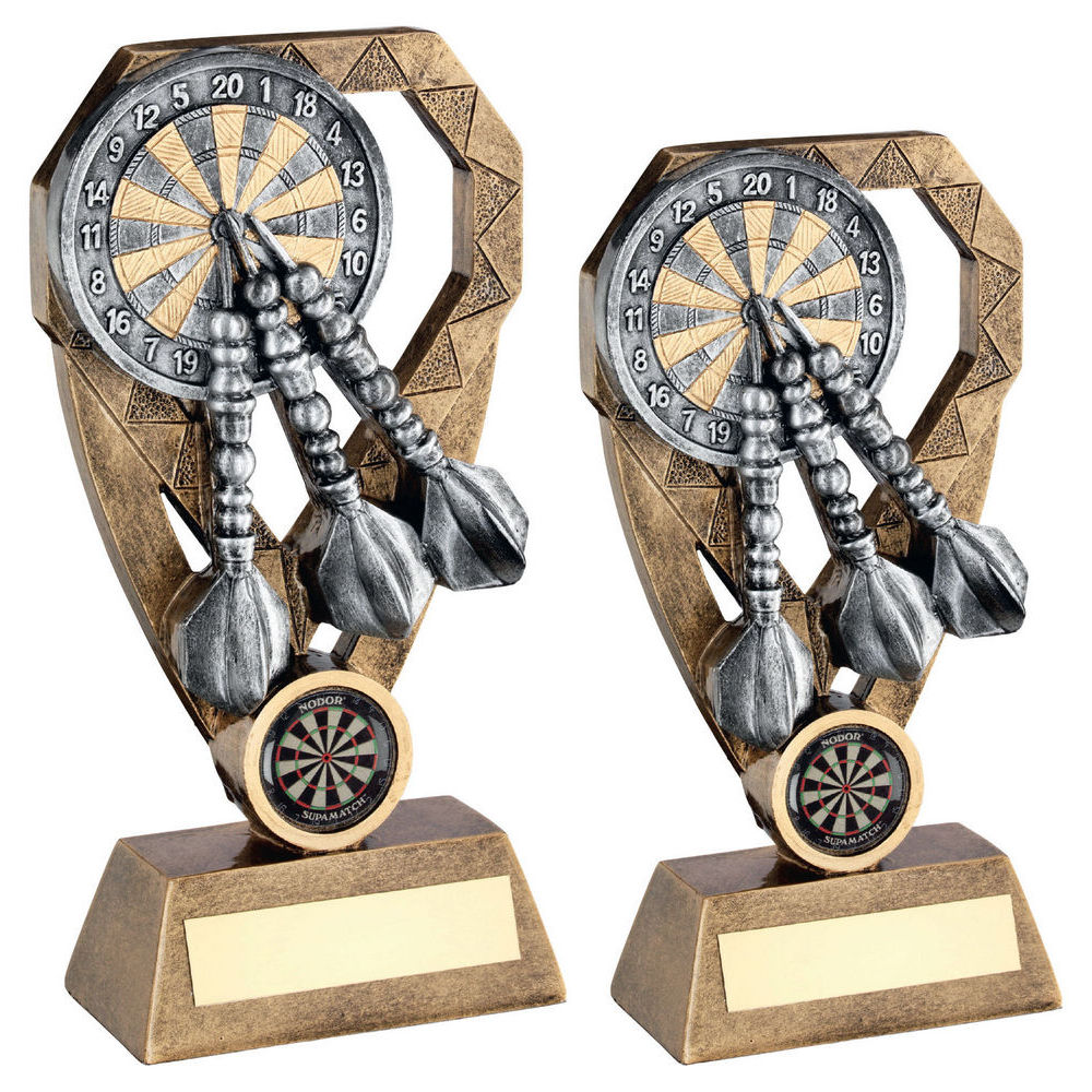 Brz|pew|gold Darts With Dartboard On Diamond With Plate (1in Centre) - 6in