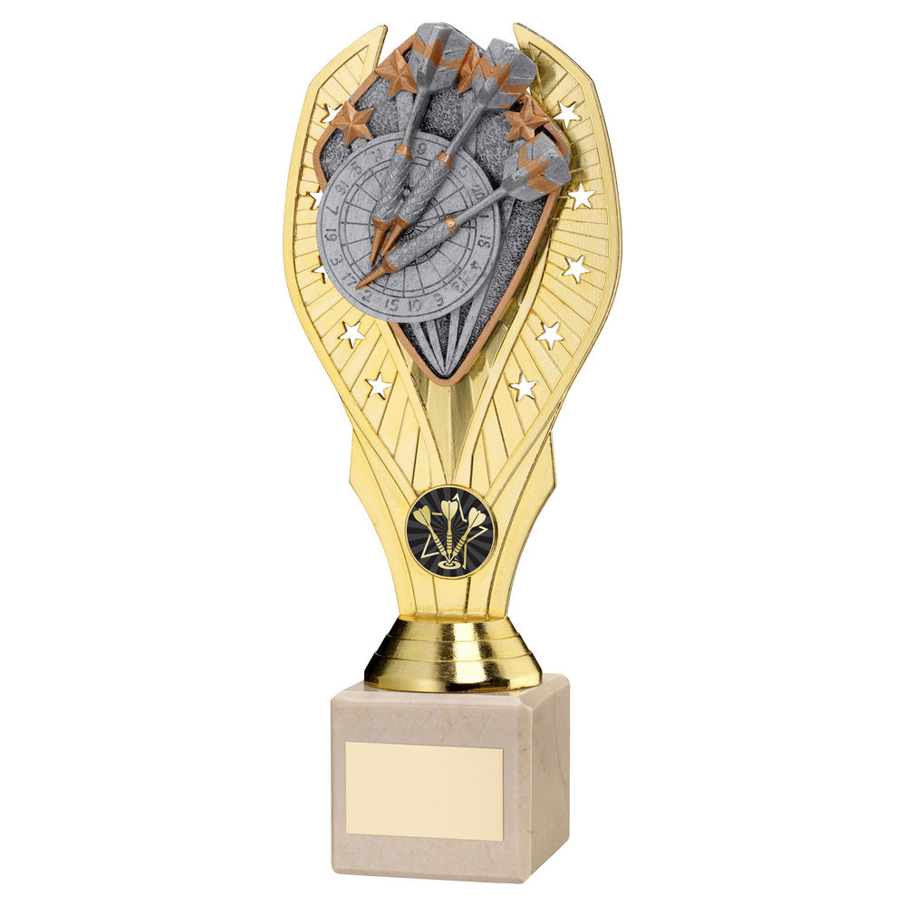 Gold Plastic Holder + Darts Disc On Cream Marble Trophy (1in Cen) - 9in