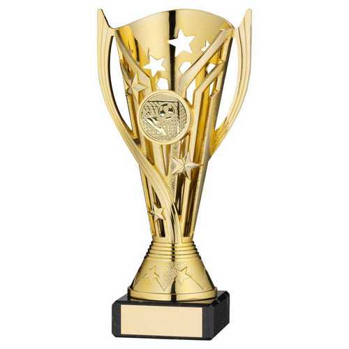 Gold Plastic Flash Cup On Black Marble Assembled Trophy (1" Cen) - 9in