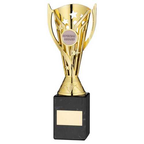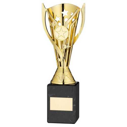 Gold Plastic Flash Cup On Black Marble Assembled Trophy (1" Cen) - 9in