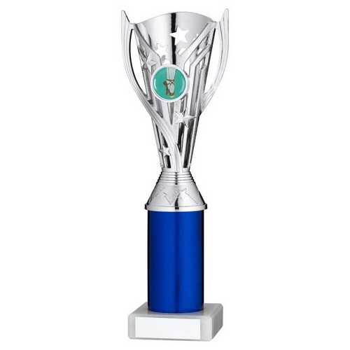 Silver|blue Plastic Flash Cup Assembled On Marble (1in Cen) - 8in