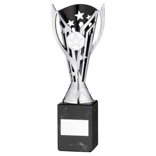 Silver|blk Plastic Flash Cup On Blk Marble Assembled Trophy (1" Cen) - 9in