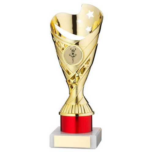 Gold|red Plastic Sabre Cup Assembled On Marble (1in Cen) - 9in