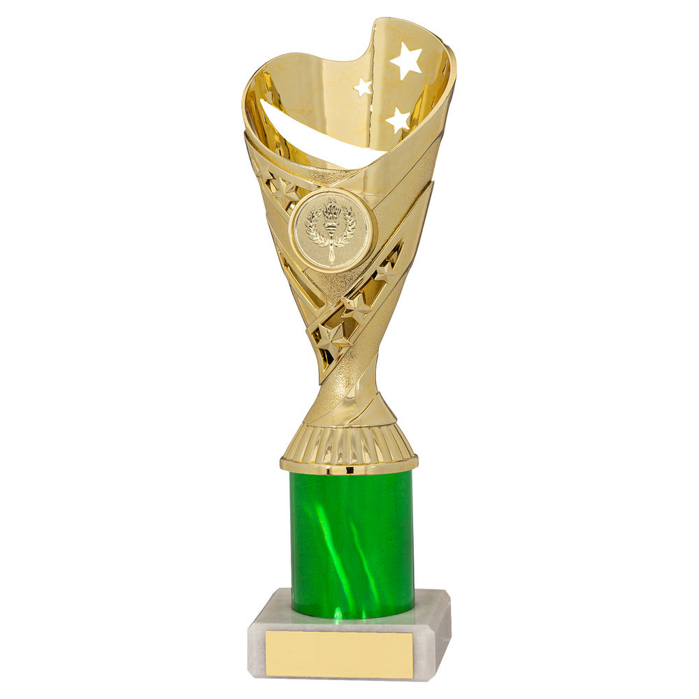 Gold|green Plastic Sabre Cup Assembled On Marble (1in Cen) - 9in