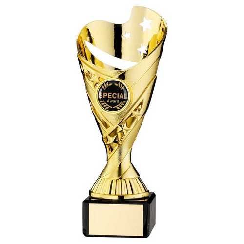 Gold Plastic Sabre Cup On Black Marble Assembled Trophy (1" Cen) - 9in