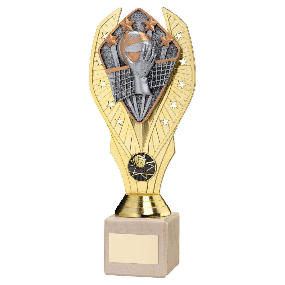 Gold Plastic Holder + Volleyball Disc On Cream Marble Trophy (1in Cen) - 10in