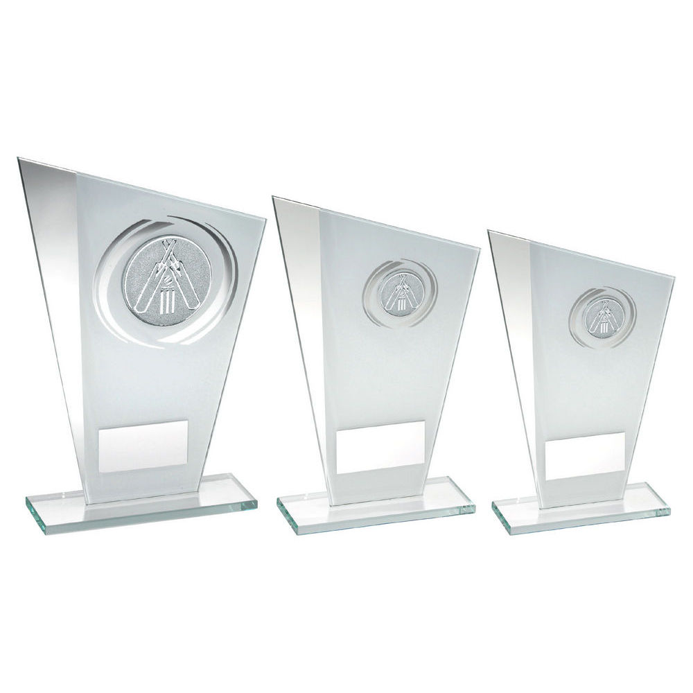 White|silver Printed Glass Plaque With Cricket Insert And Plate - 8in