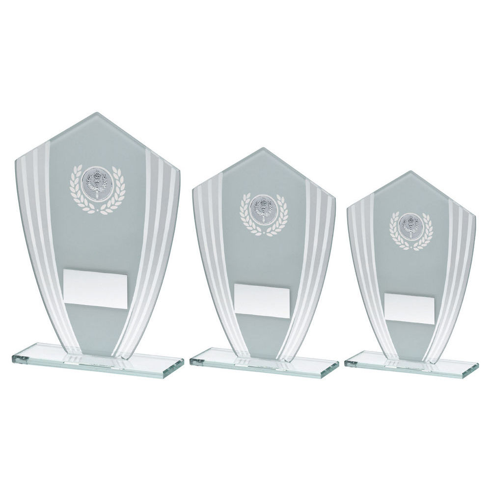White|silver Glass Shield Plaque With Plate (1in Cen) - 7.25in