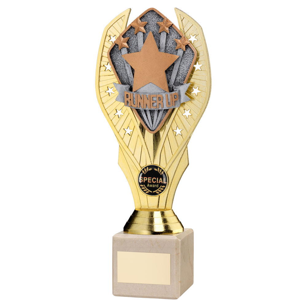 Gold Plastic Holder + Runner Up Disc On Cream Marble Trophy (1in Cen) - 7.75in