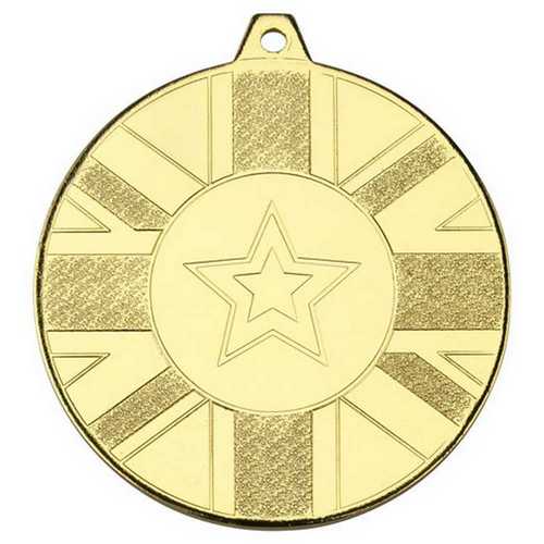 Union Flag Medal (1in Centre) Gold - 2in