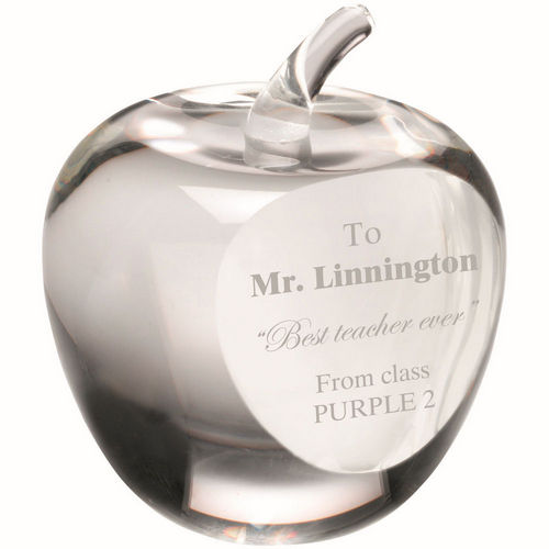 Clear Glass Apple Paperweight With Presentation Case - 3.5in