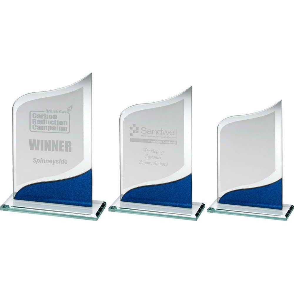 Jade Glass Pointed Plaque With Blue|silver Detail (4mm Thick) - 7.25in