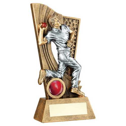 Brz|pew|red Male Cricket Bowler On Backdrop (1in Centre) - 7.5in