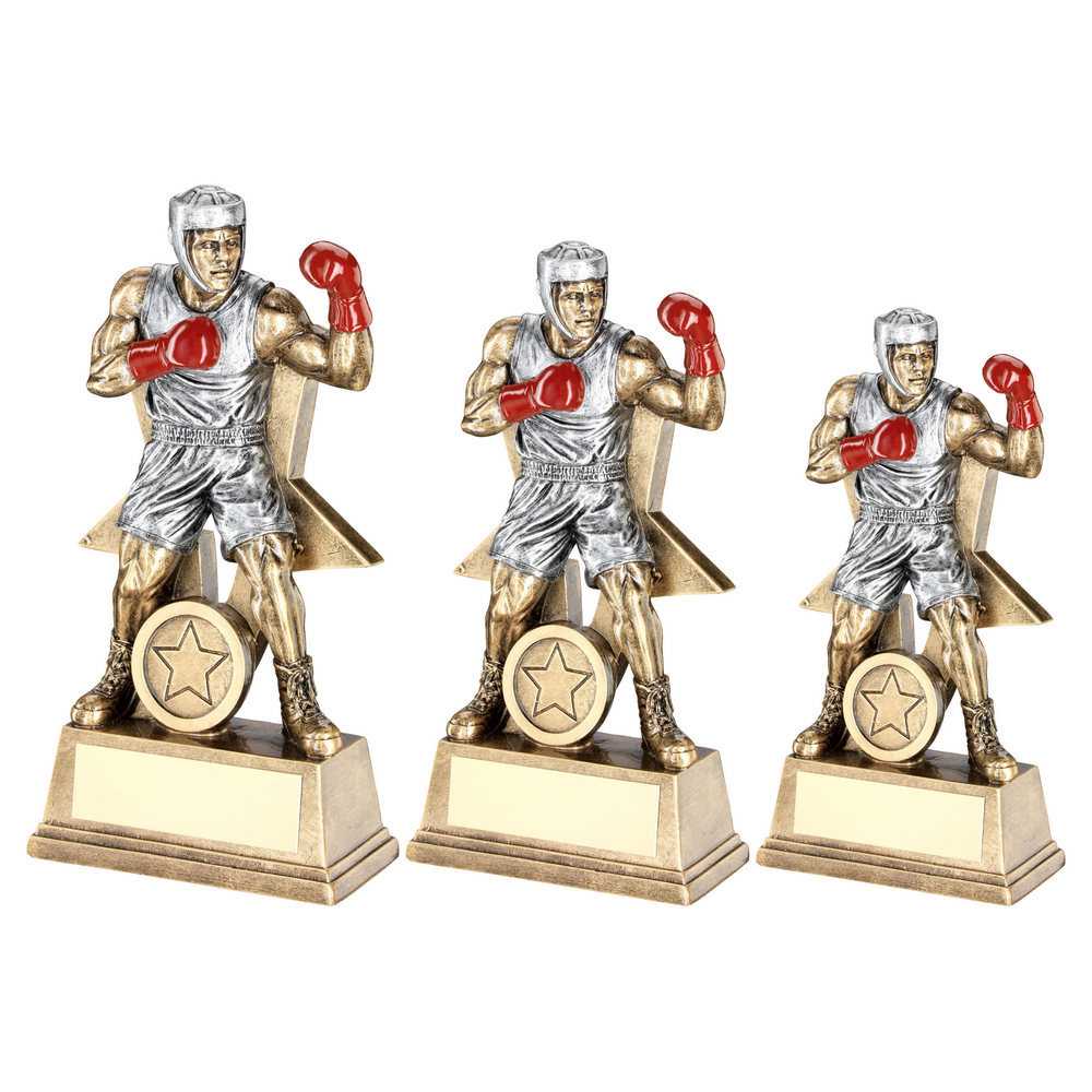 Brz|pew|red Male Boxing Figure With Star Backing (1in Centre) - 7in