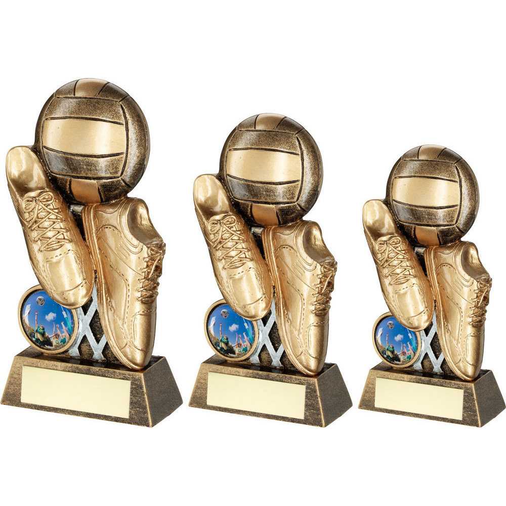 Brz|gold Flatback Netball Trainers And Ball On Riser (1in Centre) - 4.75in