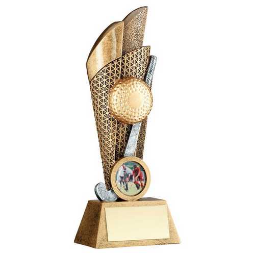 Brz|pew|gold Hockey Ball And Stick On Mesh Backdrop (1in Centre) - 6in