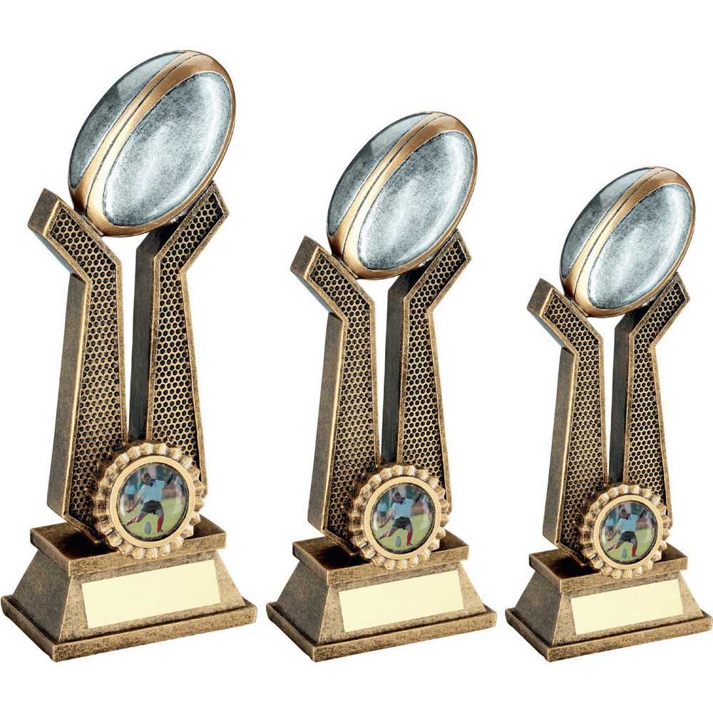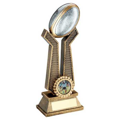 Xxx Bronze|pew|gold Rugby Ball On Twin Prongs (1in Centre) - 8in