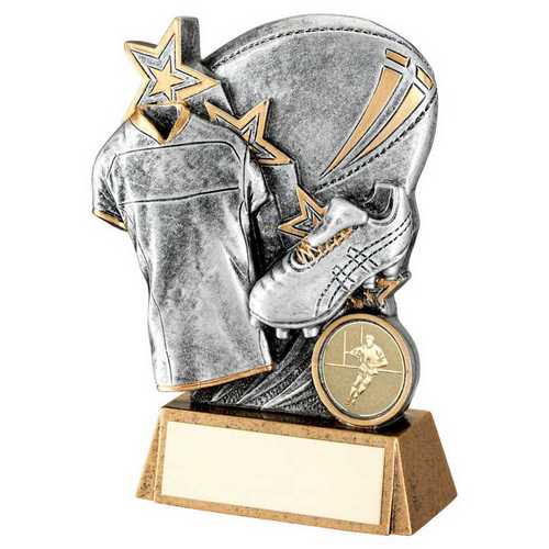 Pew|gold Rugby Ball With Boot And Shirt On Brz Base (1in Cen) - 5.25in