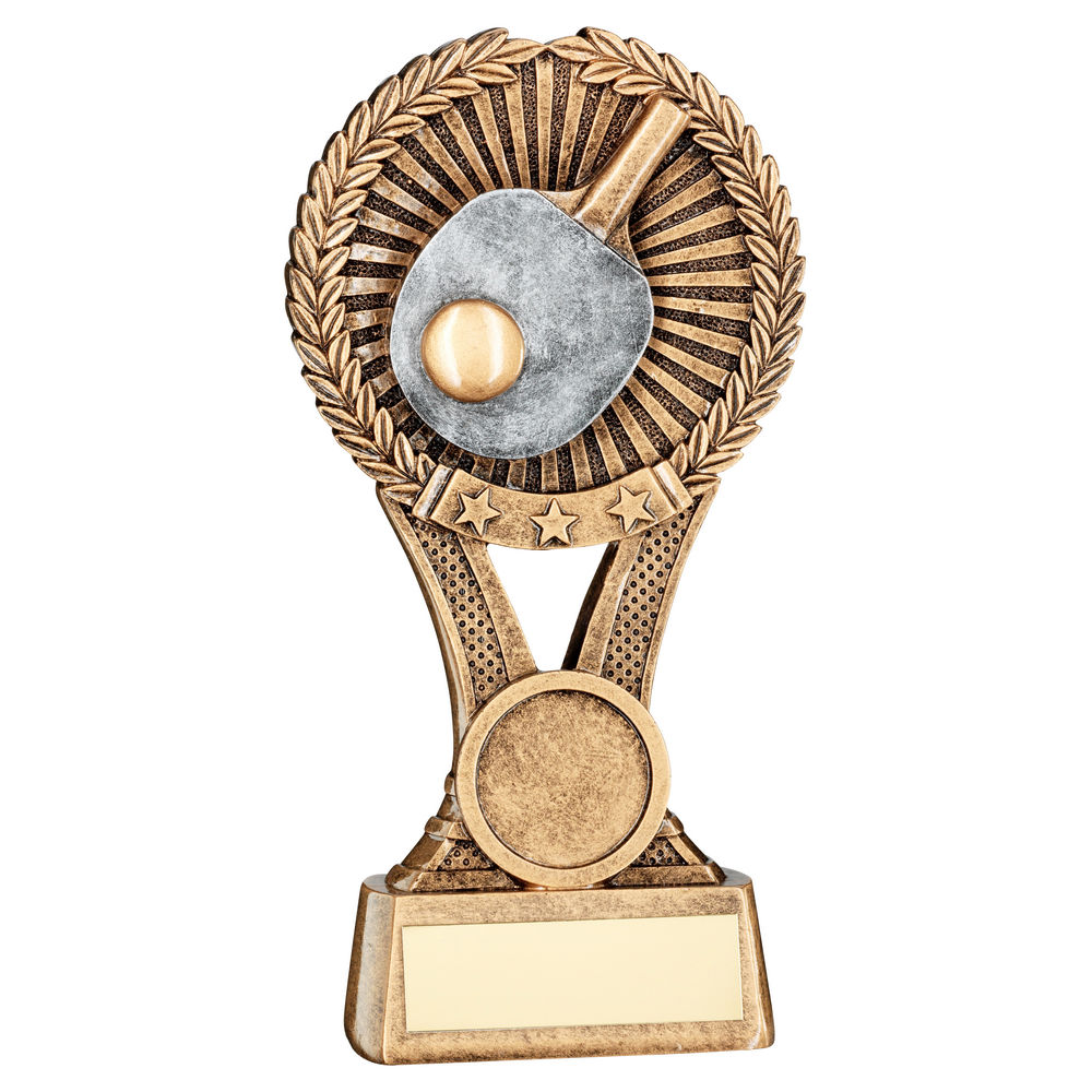 Brz|gold|pew Table Tennis Round Wreath On V Riser (1in Cen) - 6in