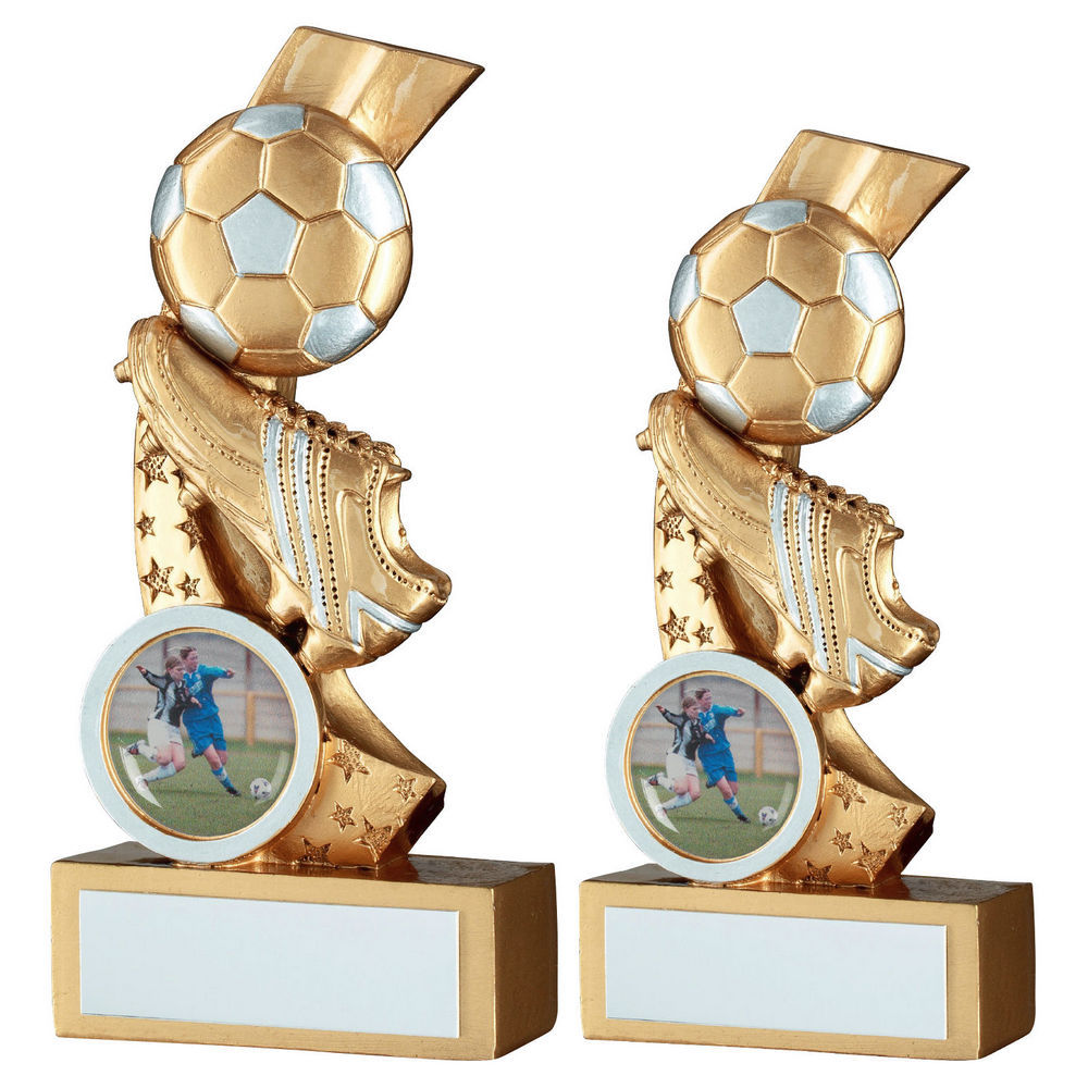 Xxx Gold|silver Football And Boot On Multi Star Curve (1in Centre) - 4in