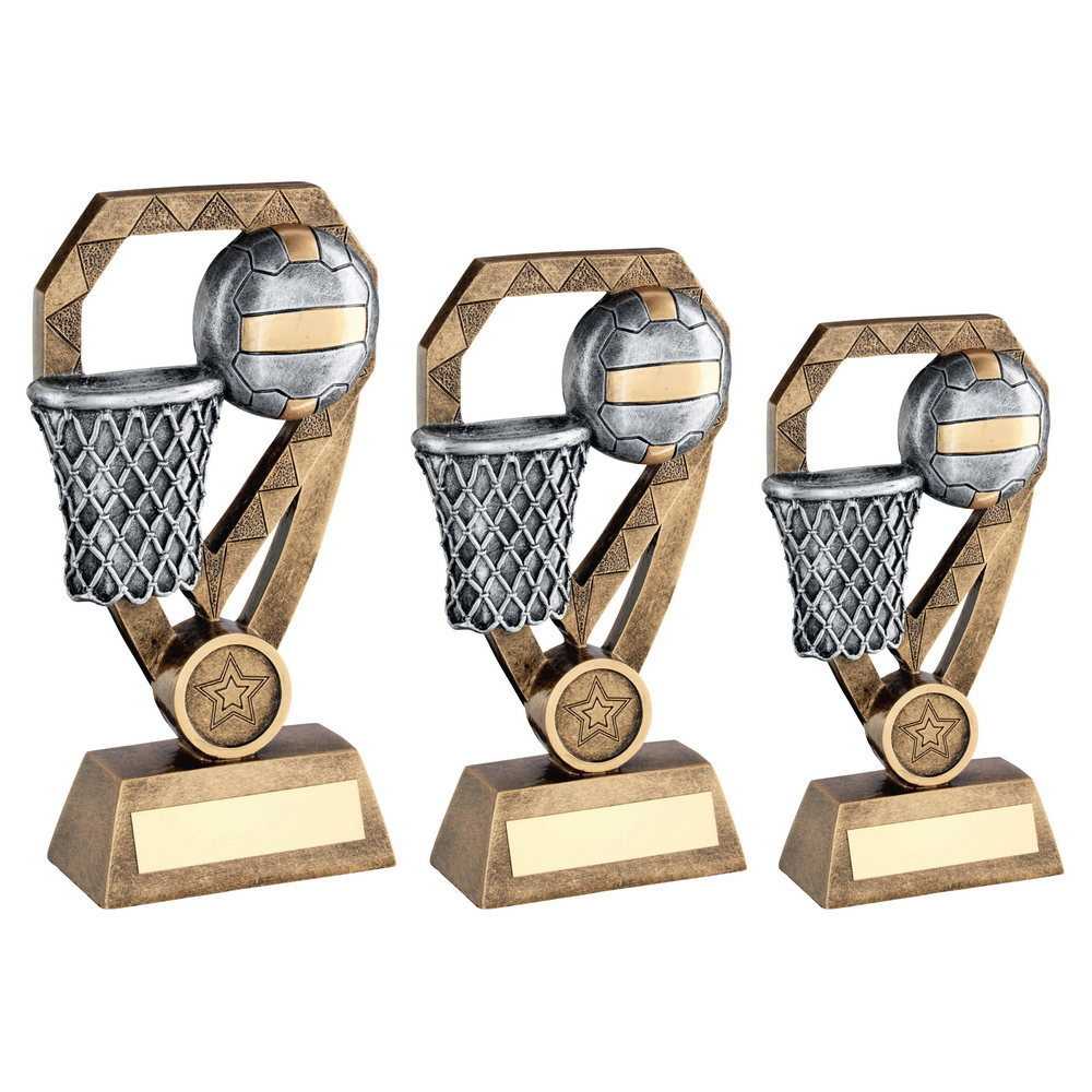 Brz|pew|gold Netball With Net On Diamond (1in Centre) - 6in