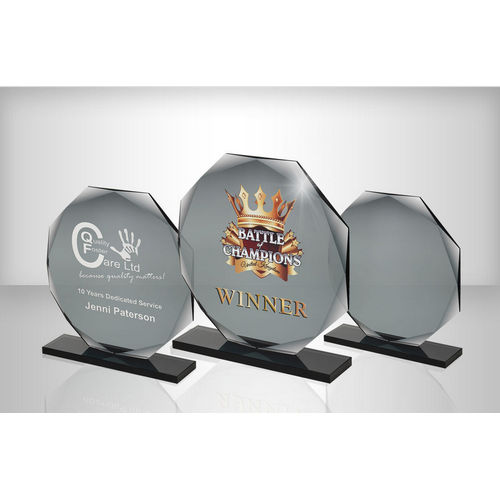 Smoked Black Glass Octagon Plaque (10mm Thick) - 6.75in