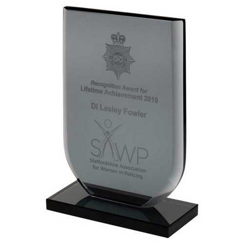Smoked Black Glass Shield Plaque (10mm Thick) - 6.75in