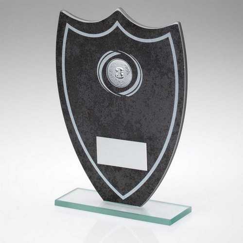 Stone Effect Glass Shield With White Wreath And Lines (1in Centre) - 6.5in